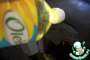 В глубокую сковороду налить масло "Олейна". Я готовила в ВОКе. Если готовите в обычной сковороде, потом нужно переложить в форму и запекать далее.