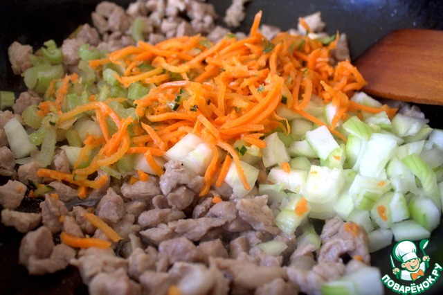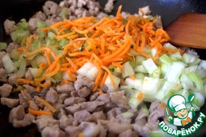 Всыпать морковь, лук, сельдерей.