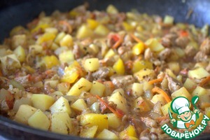 Овощи с мясом уже готовы.