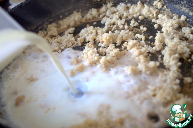 Влить молоко, помешивая.