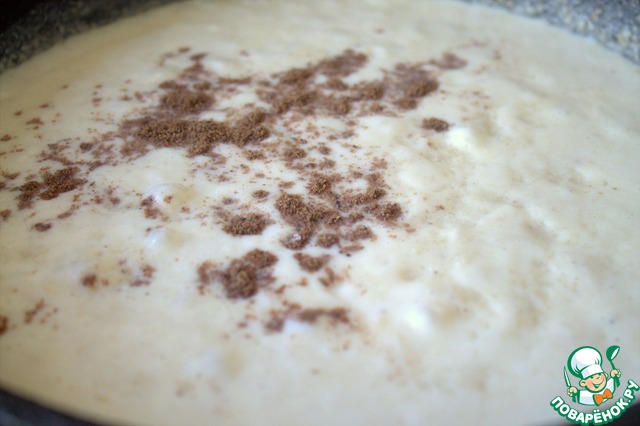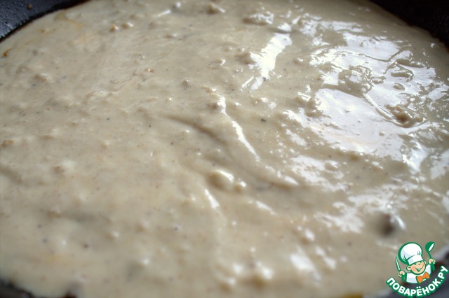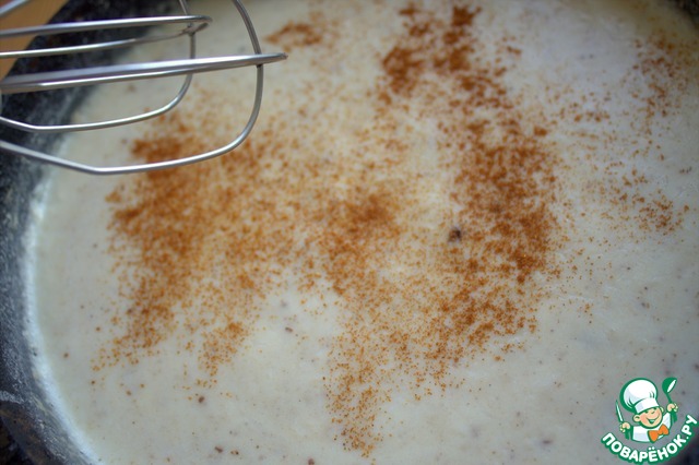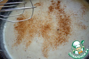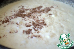 Мешать до загустения, всыпать мускатный орех, соль.