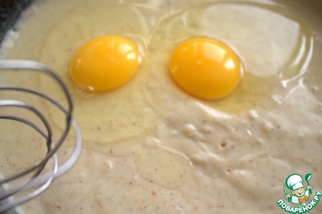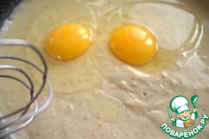 Дать чуть остыть, вбить яйца, взбить снова.