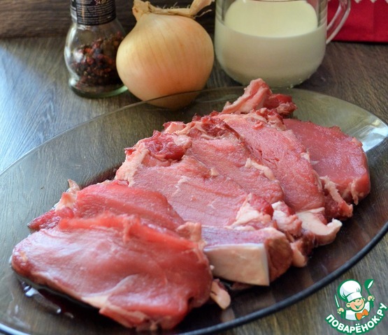 Приготовить продукты. Говядину вымыть, обсушить и нарезать пластами, 1,5 см. шириной. Р. S. : я беру говяжью вырезку или "уголки", это самое мягкое мясо из говядины.
