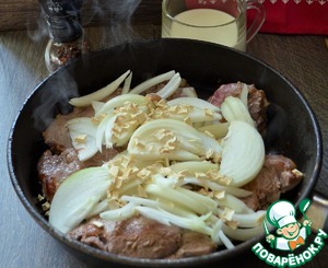 На смеси растительного и 1ст. л. сливочного масел обжарить говядину, по 4-5 минут с каждой стороны, огонь средний.