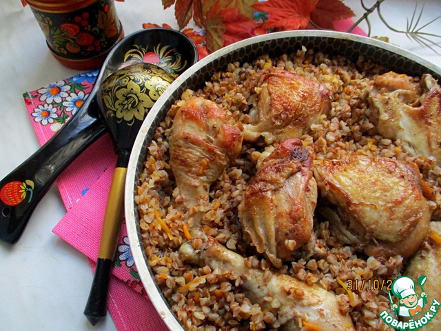 Рецепт «Курица в маринаде со сливочной гречкой»: