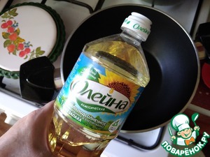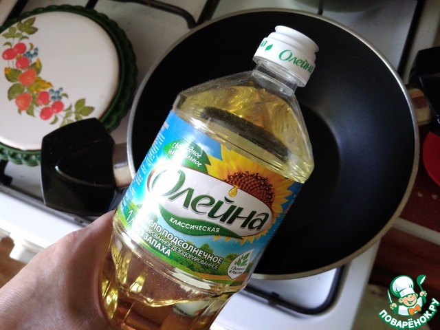 Нам нужен вок или сотейник с толстым дном. Ставим на огонь, наливаем масло. Я буду использовать ТМ Олейна подсолнечное.