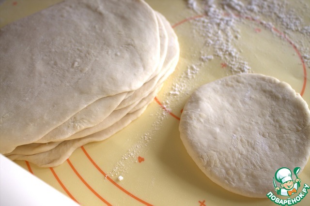 Раскатать в лепёшку, сложить заготовки, накрыть полотенцем.