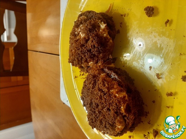 Смазать верх сметанным кремом с помощью кондитерского мешка. Сверху посыпать крошкой и убираем в холодильник на пару часов. Можно сразу подавать.