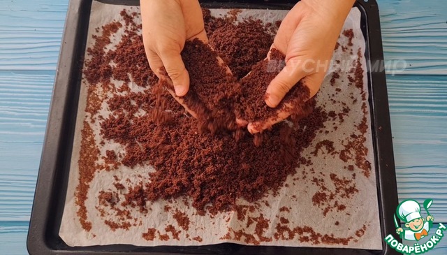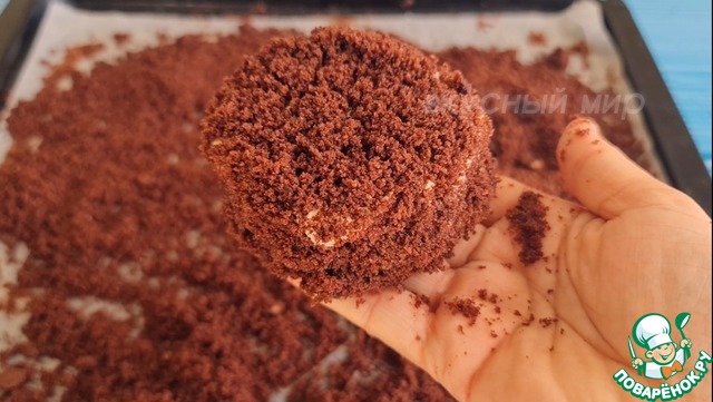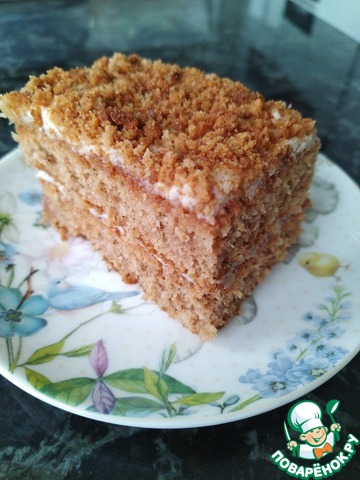 [+5]Сахара положила чуть меньше - 160г, понравилось. Сгущенка в креме отлично подслащивает. В следующий раз возьму жирную сметану, а то крем жидковат получился. Крошек вышло много - ребенок помогал вырезать формочкой, резал, как придется 😁 Смешала с остатками крема, использовала, как макалку для сушек к чаю. Оооочень вкусно!