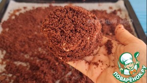Остатки бисквита измельчить в блендере или руками.