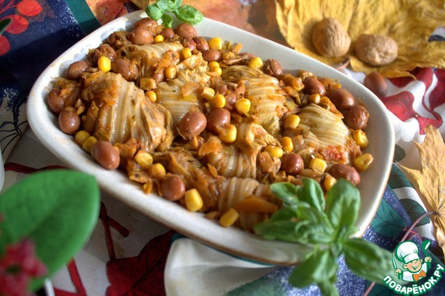 Многие не любят готовить голубцы из-за долгой подготовки, да и вкус часто зависит от сорта капусты. Для быстроты я иногда заворачиваю начинку в листья пекинки. А сегодня вообще пришла такая идея, когда нашла в холодильнике готовую фасоль, сваренную в мультиварке для другого блюда.
