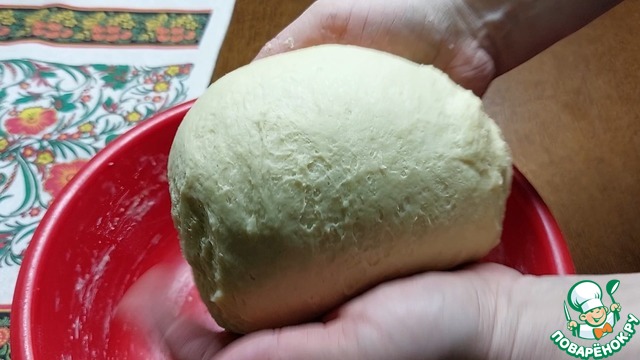 Перекладываем его в слегка смазанную растительным маслом миску, накрываем полотенцем и отправляем в тёплое место примерно на 1 час. В любом случае тесто должно увеличиться минимум вдвое. По прошествии времени, увеличившееся в объёме тесто слегка обминаем и приступаем к приготовлению рулетов.