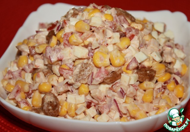 Делюсь рецептом простого, пикантного и очень вкусного салата с копченой курицей. Уверена, вашей семье и вам очень понравится.