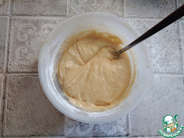 Просеиваем муку и тщательно вымешиваем тесто. Тесто густое.