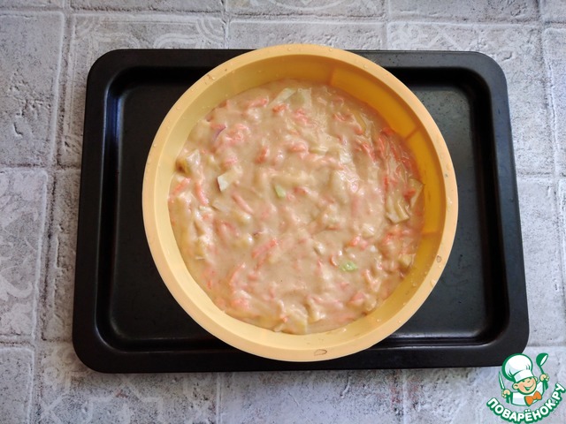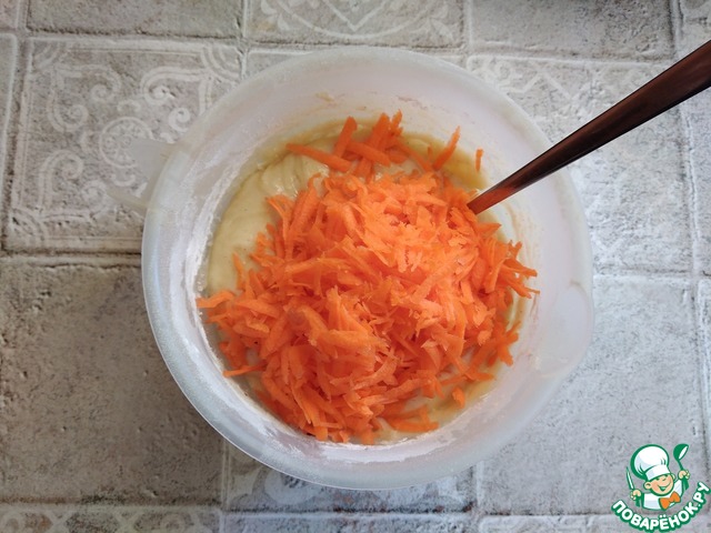 Кладём натёртую морковь. Я натирала её на средней тёрке, можно - на мелкой.