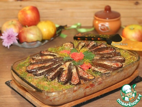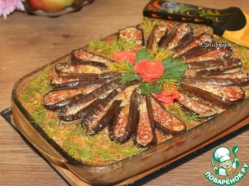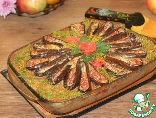 18. Накрываем формочку фольгой и отправляем в разогретую до 180 С духовку на 50-60 минут или до готовности баклажана.