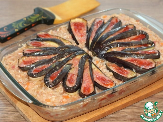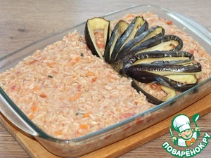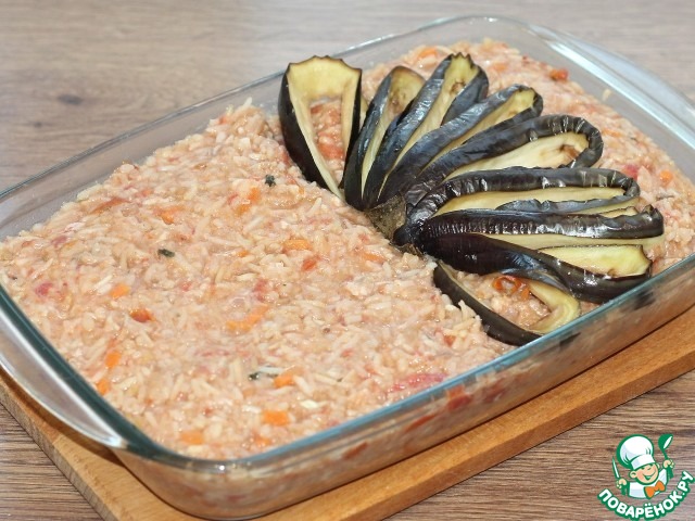 А вот в духовке, очень долго запекался баклажан. Самое главное рис под фольгой не был сухим за такое время.