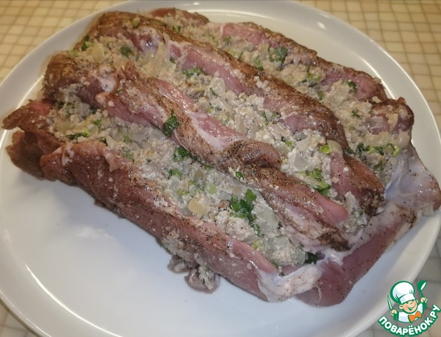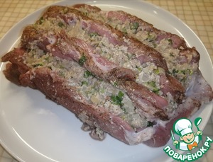 • Готовой ореховой смесью начинить свинину.