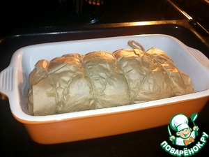 • Завернуть хорошо свинину в пергаментную бумагу.