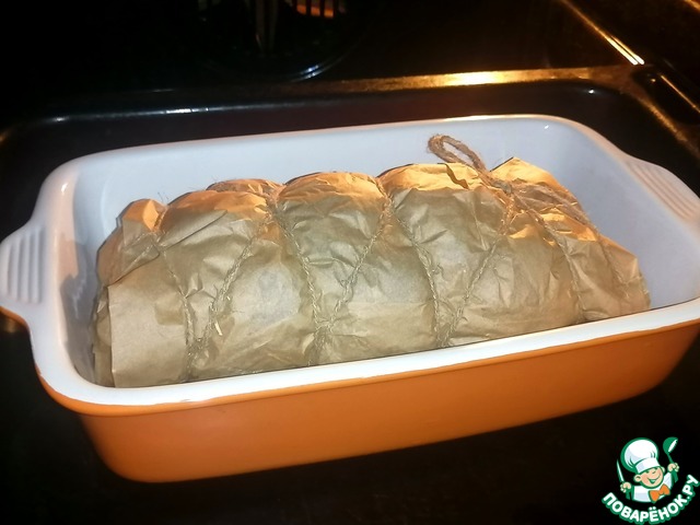 • Обвязать шпагатом. Перекладываем наше мясо в форму для запекания.