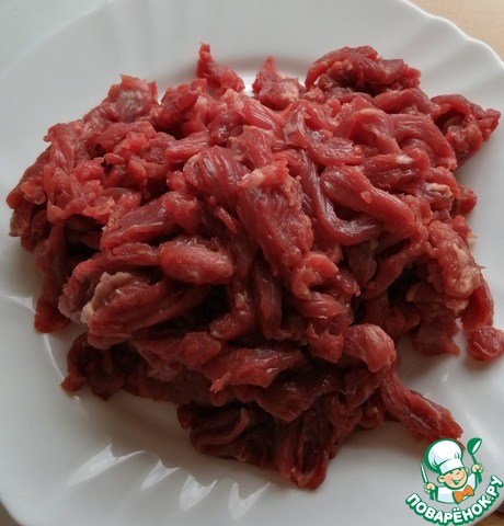 Мясо нарезать тонкими полосками.