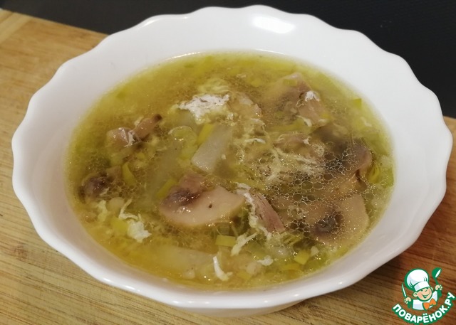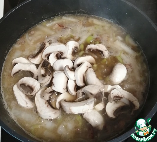 Добавляем шампиньоны и варим ещё 10 минут.
