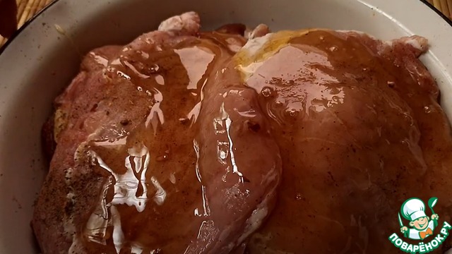 5) Далее свиную корейку нужно посолить, поперчить и посыпать приправой для мяса.