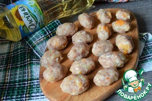 Из фарша налепить 16-17 фрикаделек, овальной формы.