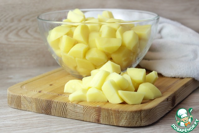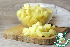 Нарезать картофель на брусочки небольшого размера.