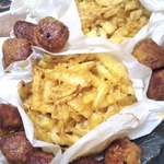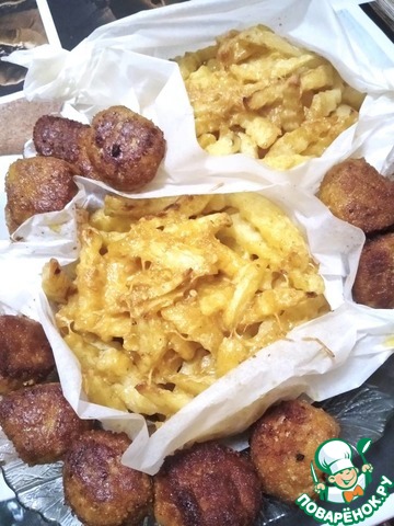 Разложить поровну брусочки с картофелем в сырной массе по приготовленным бумажным "лодочкам". -