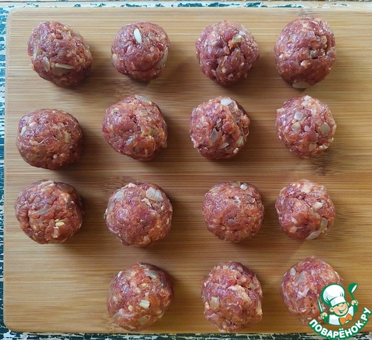 • Сформировать фрикадельки, размером чуть больше грецкого ореха.