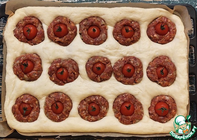 Рецепт «Дрожжевой пирог с фрикадельками и черри»: