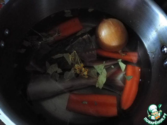 - Рыба (голова, хвост, плавники от стерляди) — 250 г