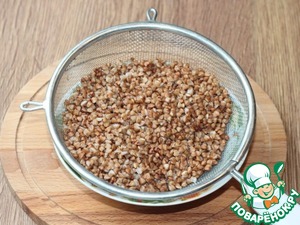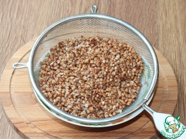 1. Гречку 0,5 стакана промыть, высыпать в сито и просушить. Крупу, после этого можно обжарить на сухой сковороде - это по желанию.