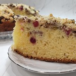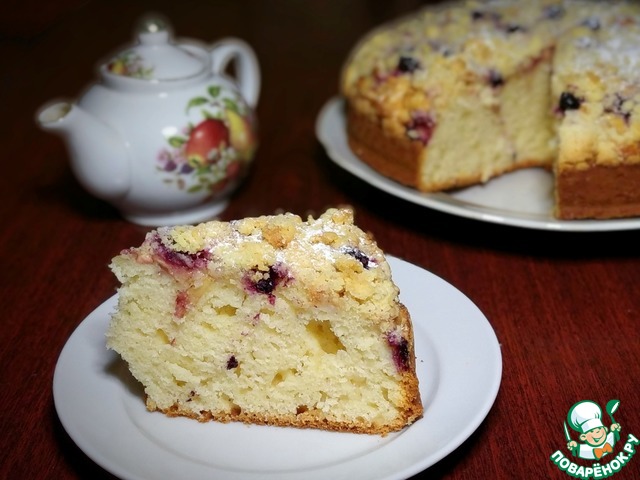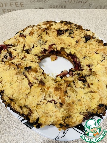 Из холодильника достаём песочную крошку и посыпаем пирог. Отправляем его в духовку, разогретую до 180 градусов на 45-50 минут. Моя духовка работает в режиме "низ - верх" без конвекции. Готовность проверяем зубочисткой.