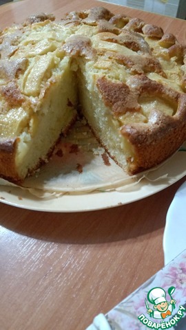 [+5]Готовила в форме 26см, поднялся на всю высоту. Всё по рецепту, только добавила ещё одно яблоко в начинку. Пирог отлично попекся, тесто очень вкусное, как и весь пирог