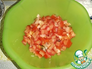 Помидоры нарезать кубиками.