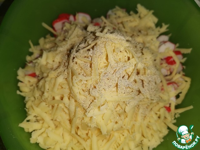 Сыр натереть на крупной тёрке, посыпать белым перцем.