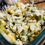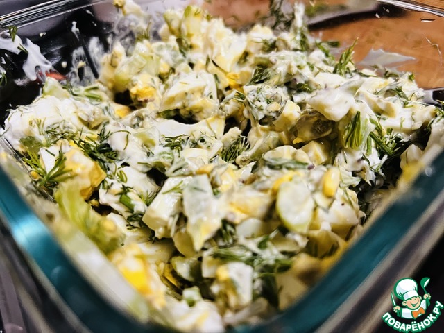 Свежий, почти весенний салат. Простой, вкусный, с доступными ингредиентами и нехлопотный. Самое сложное - сварить яйца.))) Угощайтесь!