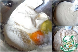 Приготовить шоколадный бисквит: яйца взбить с сахаром и солью не менее 7 минут. Включить разогреваться духовку до 180 градусов. К яичной смеси добавить ванилин, разрыхлитель, муку, какао. Перемешать.