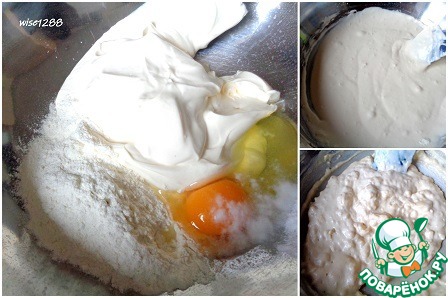 Приготовить крем: соединить сметану, 70 грамм сахара, ванилин, ароматизатор, муку, яйцо. Перемешать и поставить вариться на водяную баню. Постоянно помешивая, нагревать до загустения и появления первого «буль».