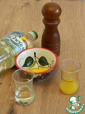 Смешаем сок и масло, заправим свежемолотым перцем.