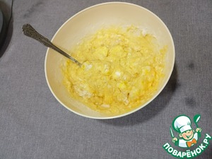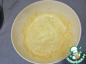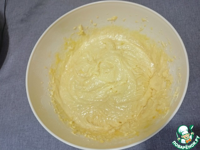 Добавляем муку и тщательно перемешиваем, желательно с помощью миксера.