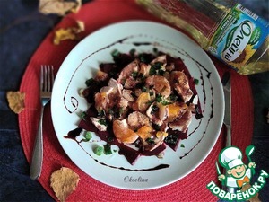 Отличный салат для осенних деньков из запечённых в фольге свёклы и куриной грудки с мандарином, заправленный пикантной заправкой из масла и бальзамического соуса, который сделаем сами.