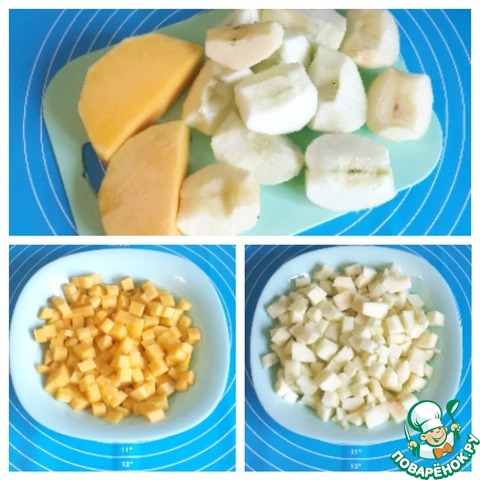 Сначала приготовим начинку. Яблоки и тыкву очистить и нарезать на кубики.