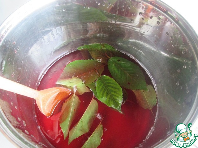 В сироп добавить свежие вишнёвые листья, 10 штук