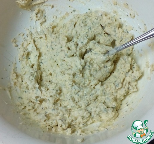 Добавьте плавленый сливочный сыр и перемешайте до получения паштетообразной массы.