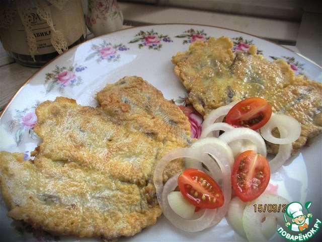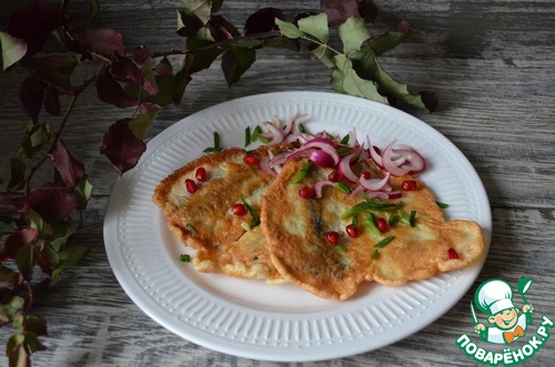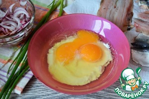 Смешать яйца и муку, посолить, кляр густоты как сметана.