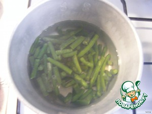 Отварить стручковую фасоль 6 мин., отбросить на дуршлаг, охладить холодной водой.