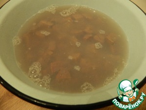 Печень зальем кипятком и оставим на несколько минут, говорят такой способ удаляет горечь и запах, у меня пролежала печень так где-то 7 минут.